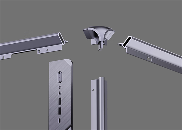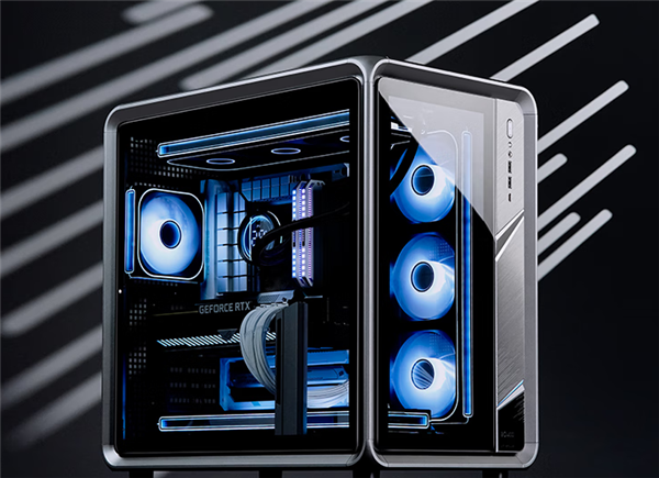 外观上,新款机箱采用高强度铝合金边框成型工艺,通过铝型材、压铸铝合金、CNC等多种工艺结合,形成金属框架骨骼,配合三面侧透,科技感拉满。